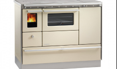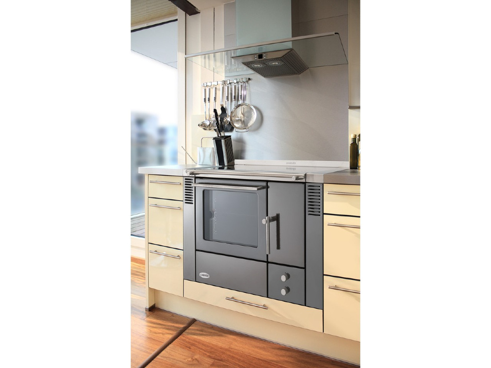 Mit dem „Pellet-Modul" ist ein kombiniertes und automatisches Heizen mit Pellets ebenso möglich wie das Heizen mit Holz. Das Modul verfügt über Zündautomatik, automatische Brennstoffzuführung sowie über eine automatische Temperaturregelung. Über eine Zeitschaltung zündet der Pelletsbrenner automatisch zum eingestellten Zeitpunkt die im Brennraum abgelegten Holzscheite. Das Anzünden per Hand fällt weg und der Herd kann sogar gezielt vorgeheizt werden. So ist die Küche morgens oder abends schon angenehm warm und wenn man nach Hause kommt, kann sofort der Topf aufs brennende Feuer. Zusätzlich lässt sich ein Warmwasser-Zentralheizungssystem betreiben und die Versorgung mit warmem Wasser für Küche und Bad bewerkstelligen. So bleibt der Öl- oder Gasbrenner abgeschaltet und die Energiekosten werden auf „Sparflamme" gehalten.
